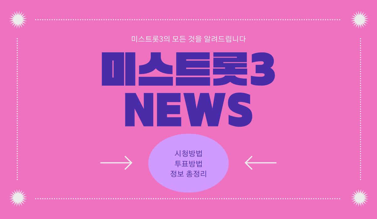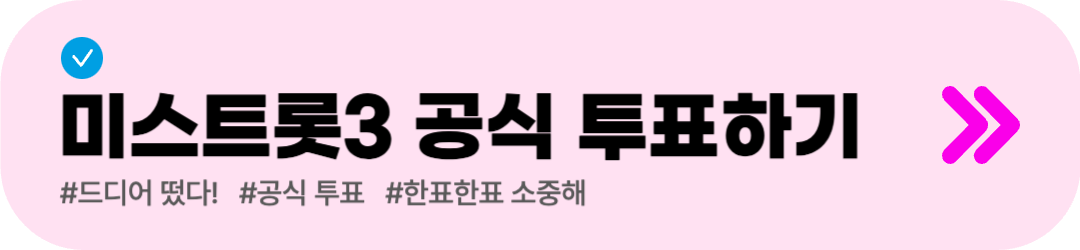 우리 미스트롯3 관련된 모든 정보를 알려드립니다. 미스트롯3 공식 투표는 1라운드 종료 이후 다음날부터 진행됩니다. 내가 응원하는 가수에게 한표한표 선사하여 소중한 마음을 보여주세요!